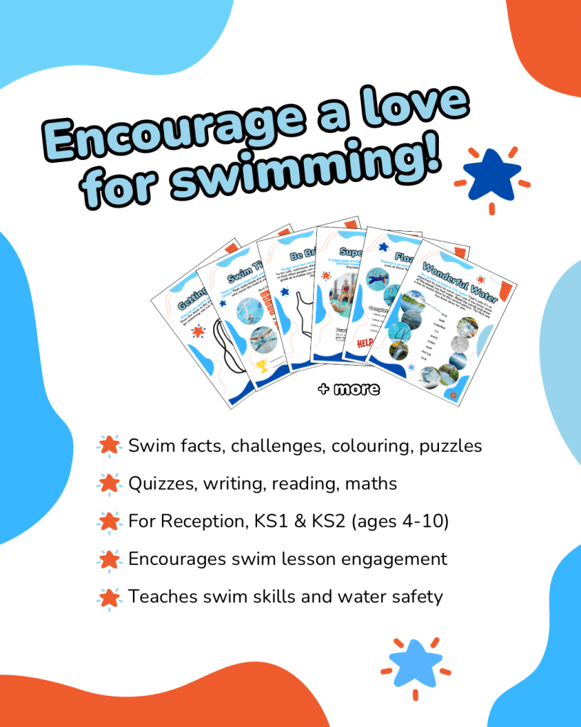The activities inside support the national curriculum. As a qualified swim teacher who has also worked in primary schools, I understood how to design something that supported their goals for reading, comprehension, handwriting, numeracy and creative learning. It was designed with key stage 1 in mind but will be completed by many children in reception and key stage 2, also.